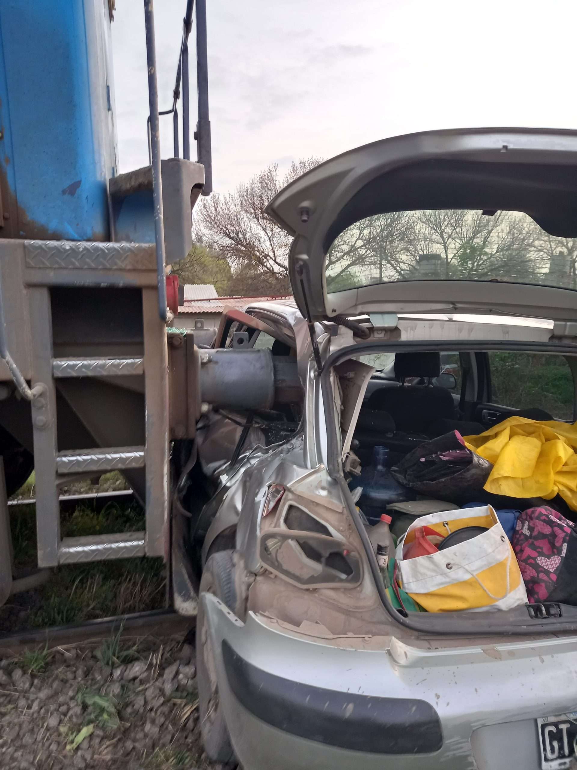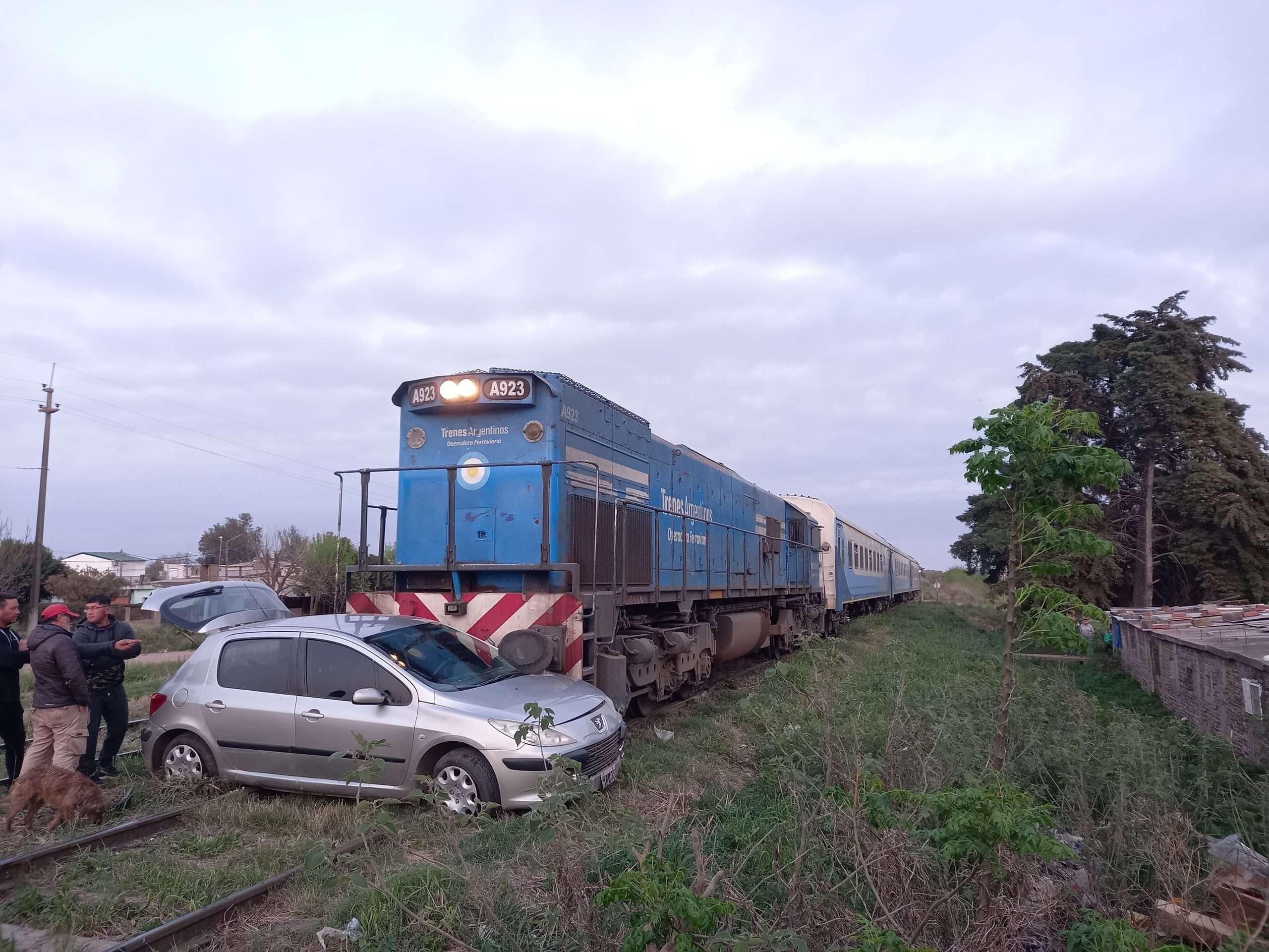 Según el parte de Bomberos Volunatarios, éstos intervinieron a las 6:04 hs. Al llegar al lugar encontraron un automóvil embestido por la formación del tren de pasajeros a unos 100 mts del paso a nivel. Los 4 ocupantes (2 femeninos y 2 masculinos) se encontraban ya fuera del vehículo. En colaboración con el SAMCO local procedieron a inmobilizar a los pacientes que lo requerían y remitieron a efector de salud correspondiente. En el lugar trabajaron los móviles 16 y 20, unidades de primer respuesta.