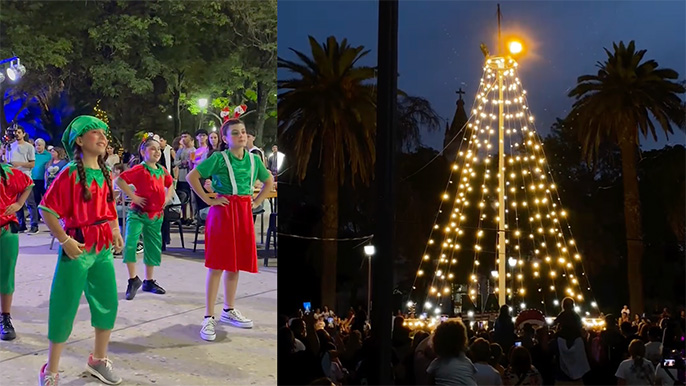 La jornada abrió con la feria de artesanos y la oferta de gastronomía local, que le dieron color y movimiento a la plaza. Luego, el Coro Estable Municipal presentó una selección de villancicos que acompañó el momento central de la noche: la iluminación del arbolito, que fue celebrada con aplausos y emoción por las familias presentes.