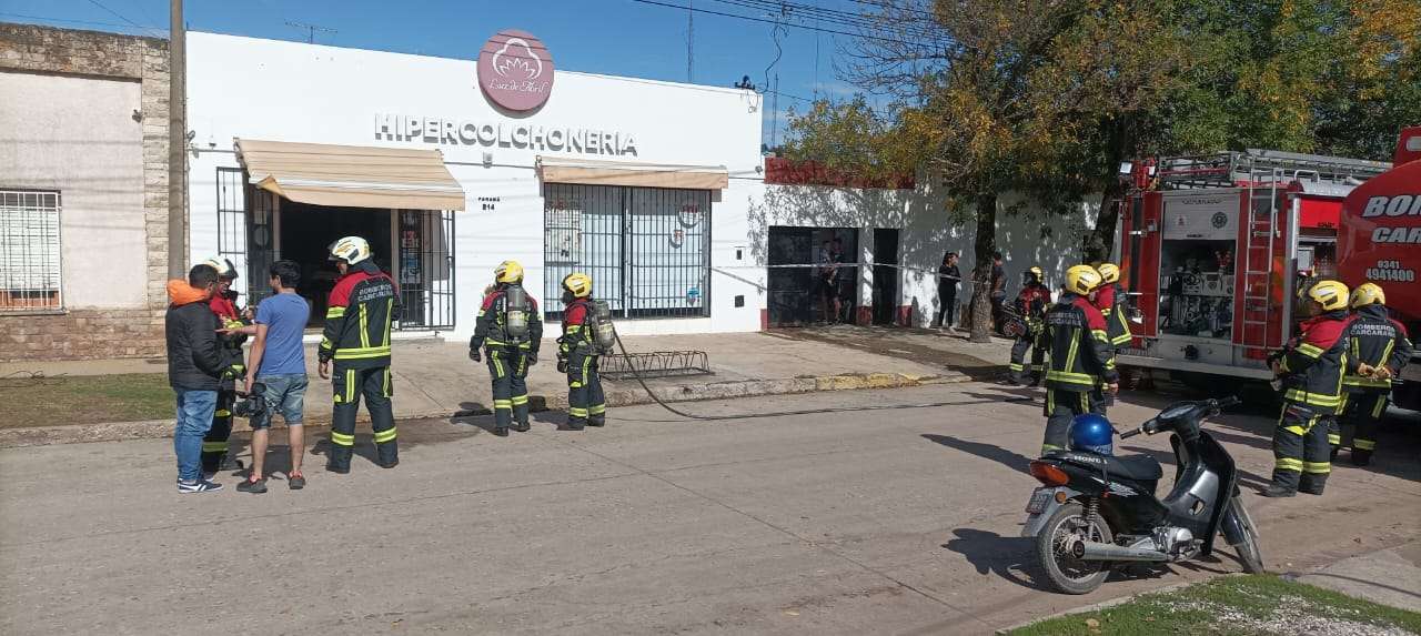 Un importante comercio de la ciudad de Carcarañá, de venta de colchones, ropa y muebles para dormitorios ubicado en Paraná al 800 tuvo un principio de incendio, que por suerte, no pasó a mayores.