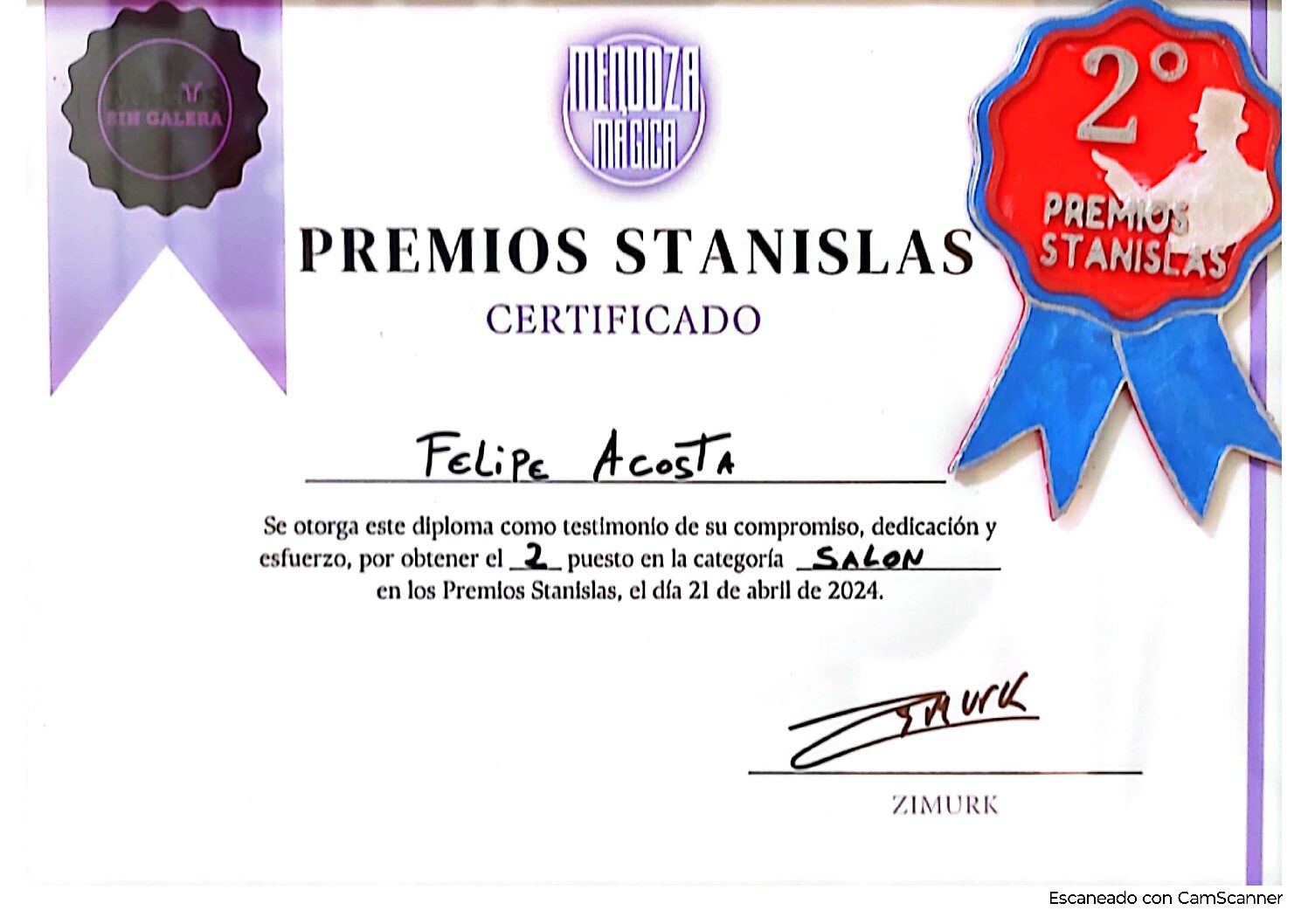 Hace unos días participó en el programa La Brújula el Dr. Felipe Acosta con su hijo de nombre homónimo. Allí recordó los momentos vividos en los Premios Stanislas, realizados en la ciudad de Mendoza, donde obtuvo el 2do puesto en Magia de Salón.